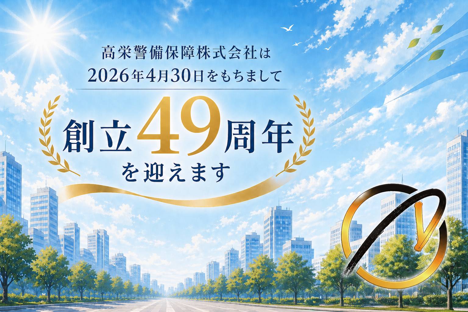 高栄警備保障株式会社は、2026年4月30日をもちまして創立49周年を迎えます。まもなくこの節目を迎えられますのも、ひとえに皆様のご支援とご愛顧の賜物と心より感謝申し上げます。
